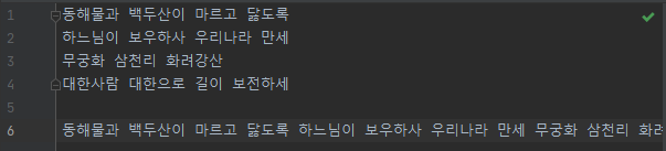 긴 문장에 '자동 줄바꿈(Soft-Wrap)'이 적용되어 좌우 스크롤 없이도 확인할 수 있음